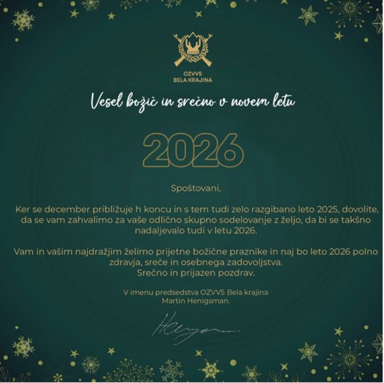 V prihajajočem letu 2026 vam in vašim bližnjim želiva veliko lepih dogodkov, zdravja in sreče, predvsem pa miru!